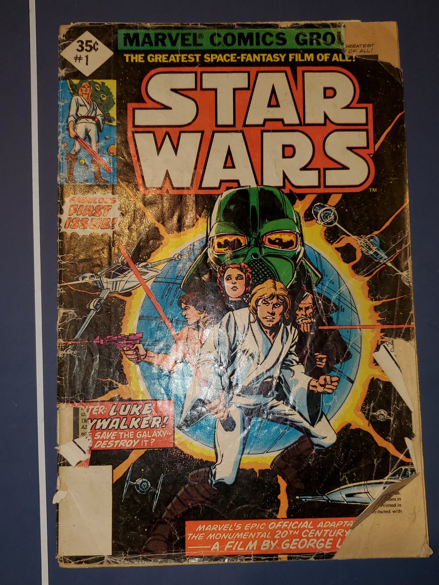 And then there was May, 1977. Star Wars. Somewhere around there, I got the first issue of the Marvel adaptation, which was released on April 12, 1977 (cover dated July). That may have been the first actual comic book that I ever got. Here’s what I know were among my earliest issues: the first six issues of Star Wars; Fantastic Four #179 (1977); Super Friends #10 (released January 1978); Defenders #56 (released November 1977); The Invaders #19 (May 1977); Peter Parker, the Spectacular Spider-Man #14 (released October 1977); Teen Titans #53 (1978); Justice League of America #162 (released November 1978); and a handful of Batman, Detective Comics, Action Comics, and Adventures of Superman from those glorious Whitman 3-for-a-dollar bags. There were others, but those a) stick out in my mind, and b) I still have, for the most part.
